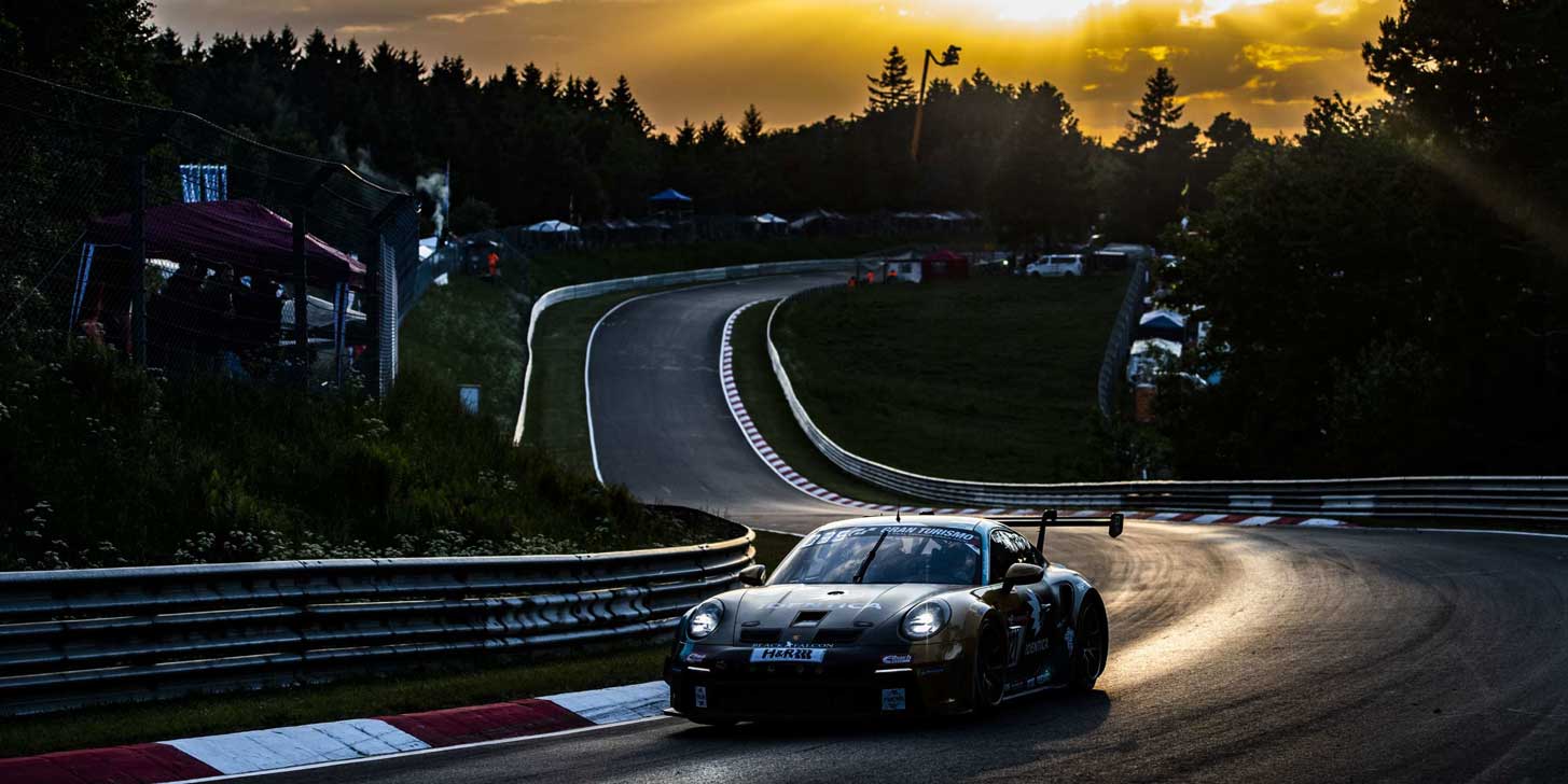 Die beeindruckende Leistung des BLACK FALCON Team IDENTICA blieb bei der 50. Ausgabe des 24h-Rennen auf dem Nürburgring am Ende unbelohnt. Paul Harkema, Tobias Müller, Noah Nagelsdiek und Tim Scheerbarth nutzten das Qualifying für letzte Abstimmungsarbeiten an ihrem Porsche 992 GT3 Cup und qualifizierten sich mit der Startnummer 121 im Mittelfeld der mit 11 Fahrzeugen stark besetzten Klasse. Im Nacht-Qualifying hatte die Mannschaft-wie auch zahlreiche andere Fahrzeuge- eine unglücklich platzierte gelbe Flagge übersehen und wurde dafür mit einer zweiminütigen Zeitstrafe im Rennen sowie dem Start aus der Boxengasse belegt. Von der schwierigen Ausgangslage unbeeindruckt egalisierten Harkema, Müller, Nagelsdiek und Scheerbarth den Nachteil schon in den ersten Rennstunden mit einer sehr starken fahrerischen Leistung. Über weite Strecken war der IDENTICA-Porsche das schnellste Fahrzeug seiner Klasse. Nach Anbruch der Dunkelheit übernahm die #121 in der Nacht zum ersten Mal die Führung in der CUP2. Dort setzte man sich fest, ehe das Rennen nach rund 16 Stunden abrupt in der Leitplanke endete. Ein Unfall im High-Speed-Bereich Tiergarten beschädigte das Fahrzeug irreparabel. Dank der hohen Sicherheitsstandards des Porsche 992 GT3 Cup blieb der Fahrer dabei unverletzt.