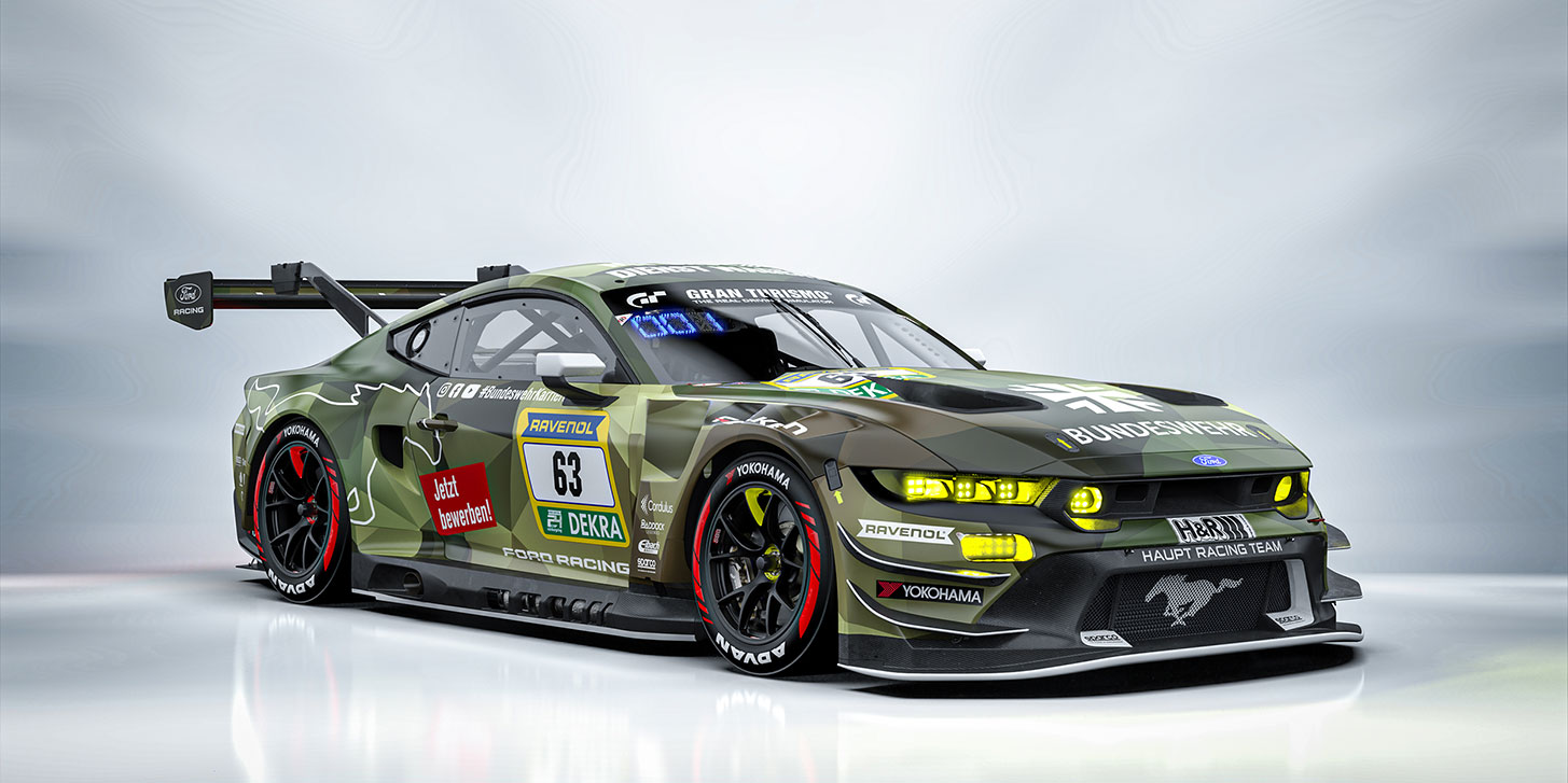 Die Nürburgring-Nordschleife ist um einen Eyecatcher reicher – einen Ford Mustang GT3 im Corporate Design der Bundeswehr. Das Rennfahrzeug mit seiner charakteristischen Tarn-Polygon-Optik wird durch das Haupt Racing Team eingesetzt. Auf dem gemeinsamen Programm von HRT und Bundeswehr stehen Starts bei der Nürburgring Langstrecken-Serie sowie beim legendären Nordschleifenklassiker, dem ADAC RAVENOL 24h Nürburgring.