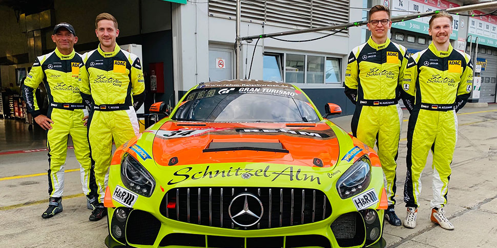 08.06.2021 Die GT4-Premiere bei den 24h Nürburgring verlief für die Mannschaft von Schnitzelalm Racing überaus erfolgreich. Neben dem Sieg in der SP10 von Marek Böckmann und Marcel Marchewicz auf dem „flotten Fleischkäs“ zeigte auch der zweite Mercedes-AMG GT4 eine fehlerfreie Leistung und verpasste den Klassensieg in der SP8T nur knapp.