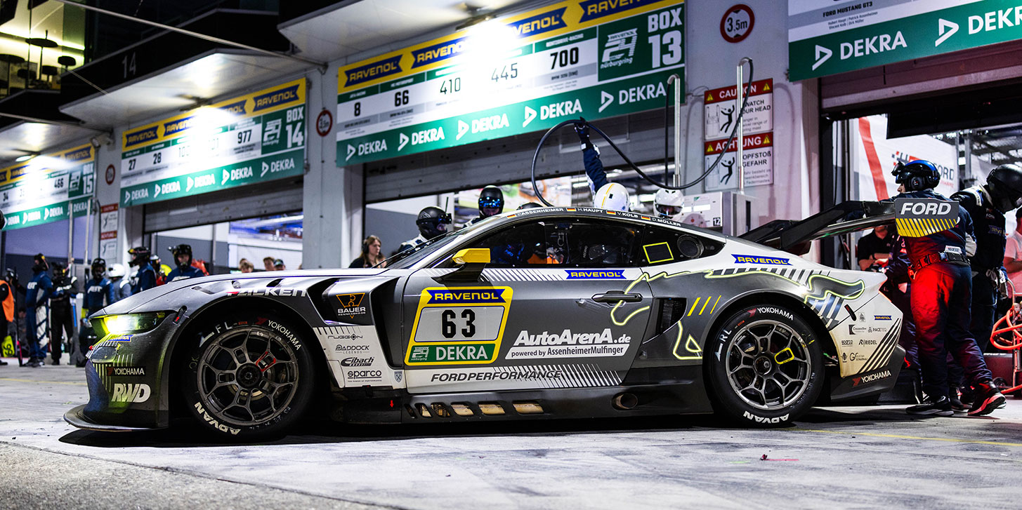 Weniger Rennglück hatten die Schwesterfahrzeuge #63 und #64. Der Ford Mustang GT3 #64 mit Arjun Maini (IND), Dennis Olsen (NOR), Jusuf Owega und Frank Stippler (beide GER) am Steuer lag vielversprechend im Rennen, musste aber am späten Samstagabend nach einem Zwischenfall im Bereich Flugplatz abgestellt werden. Ihre Teamkollegen Patrick Assenheimer, Hubert Haupt, Vincent Kolb (alle GER) und Dirk Müller (SUI) im Ford Mustang GT3 #63 beendeten nach einer starken ersten Rennhälfte aufgrund eines technischen Defekts in den Morgenstunden ebenfalls vorzeitig das Rennen.