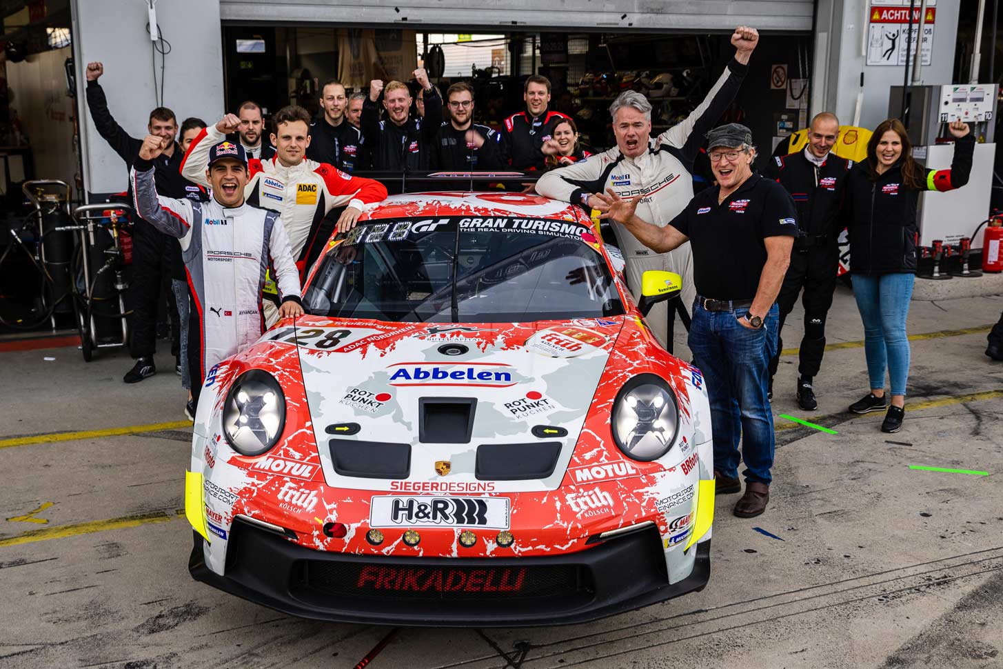 Nach Startfreigabe am Samstagmittag konnte Güven gleich die Führung übernehmen und diese über die ersten Runden hinweg erfolgreich verteidigen. Auch "Jules", Hendrik von Danwitz und Klaus Abbelen kamen in den Folgestints glänzend mit dem zuvor erarbeiteten Setup zurecht und konnten sich in den ersten Rennstunden im Bereich der Top-3 festsetzen. In der Nacht kam es dann bei einem Überholmanöver zu einem kleinen Unfall, durch den der Frikadelli Porsche beschädigt wurde und das Team letztlich zur Aufgabe zwang. Teamchef Klaus Abbelen: "Die Reparatur des Schadens hätte sehr viel Zeit in Anspruch genommen und uns weit zurückgeworfen. Daher haben wir uns dazu entschieden, das Auto vorzeitig abzustellen. Wir werden uns nun mit dem Porsche 992 GT3 Cup auf die weitere NLS Saison konzentrieren und versuchen, um den AM-Meistertitel in der Porsche Endurance Trophy mitzukämpfen."