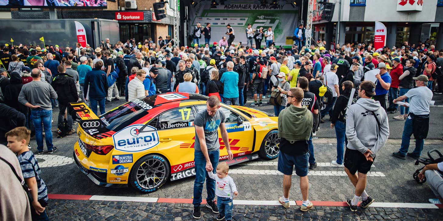 Anschließend gehörte die Bühne den Piloten des FIA Tourenwagen-Weltcups (WTCR), die sich nicht nur zur Autogrammstunde an einer langen Tafel niedergelassen hatten, sondern auch in einer zweiten Gesprächsrunde Rede und Antwort standen: „Das ist so schön, dass die Fans ohne Corona-Einschränkungen wieder zurück an die Strecke und hierher zum Racing Day kommen dürfen. Die Begeisterung hier in Adenau ist unglaublich, sodass ich immer wieder gerne hierherkomme. Für mich ist dieses Rennen sowieso jedes Jahr der Saisonhöhepunkt. Die Nordschleife ist so speziell, so etwas findest du sonst nirgends auf der ganzen Welt“, schwärmte Audi-Pilot Tom Coronel.