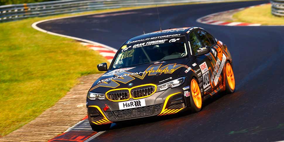 Viel Pech hatte auch das Schwesterfahrzeug, der #482 Mainhattan-Wheels BMW 330i G20, pilotiert von Jacob Erlbacher, Uwe Ebertz, Loek Hartog und Sindre Setsaas. Während einer Code-60-Phase auf dem Nürburgring GP-Kurs wurde das Fahrzeug von einem Kontrahenten im Heckbereich getroffen, was für eine Reparaturpause an der Box sorgte. Bis zu diesem Zeitpunkt war das Quartett auf Podiumskurs unterwegs. Und auch danach sollte die Pechsträhne nicht abreißen: im Bereich Schwalbenschwanz kam es zu einem Missverständnis mit einem anderen Teilnehmer, welches zum endgültigen Rennende führte.