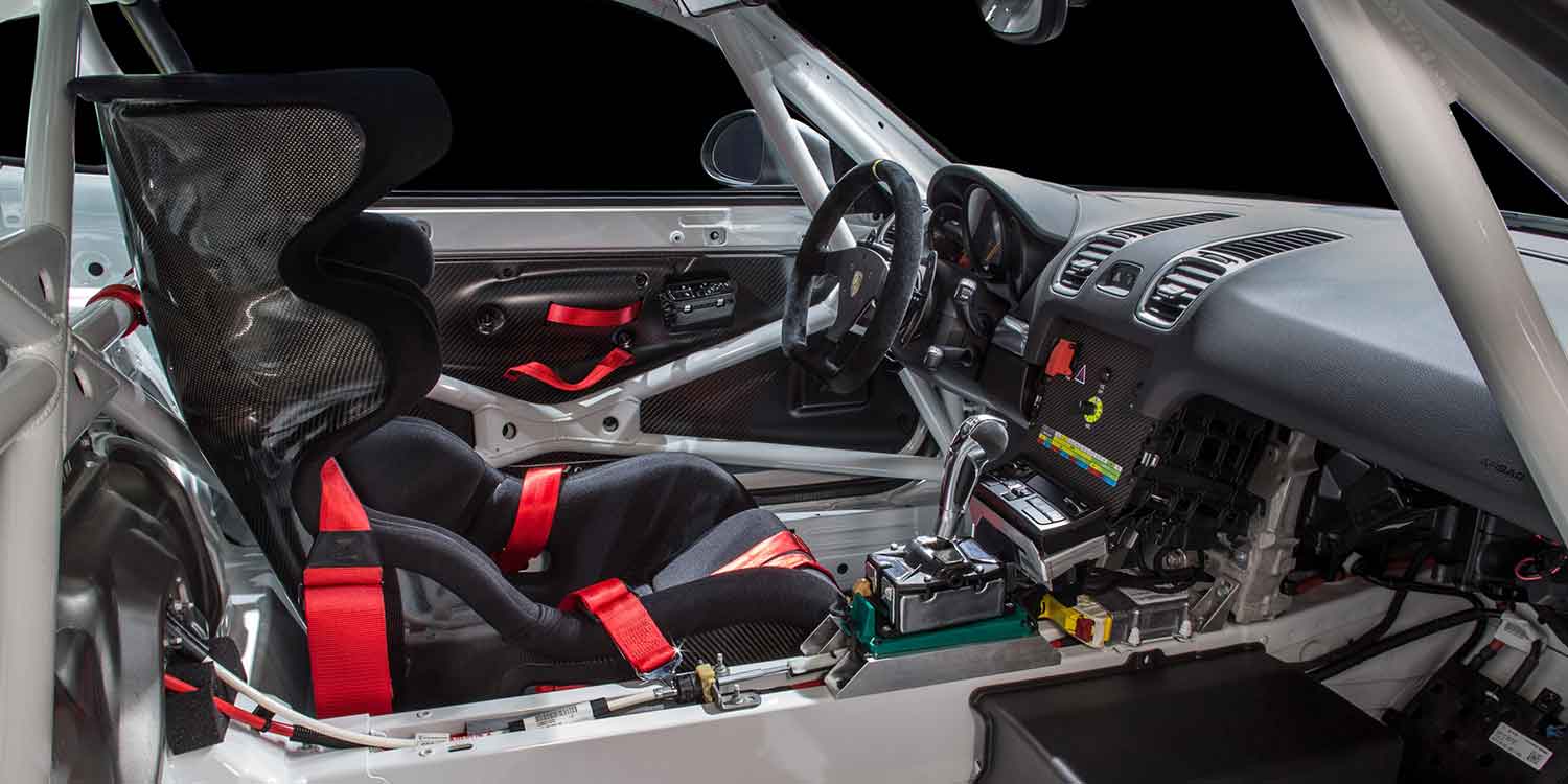 Der 283 kW (385 PS) starke Mittelmotor-Renner für Motorsport-Einsteiger, der nicht für den Straßenverkehr zugelassen ist, basiert auf dem erfolgreichen Straßensportwagen Cayman GT4.