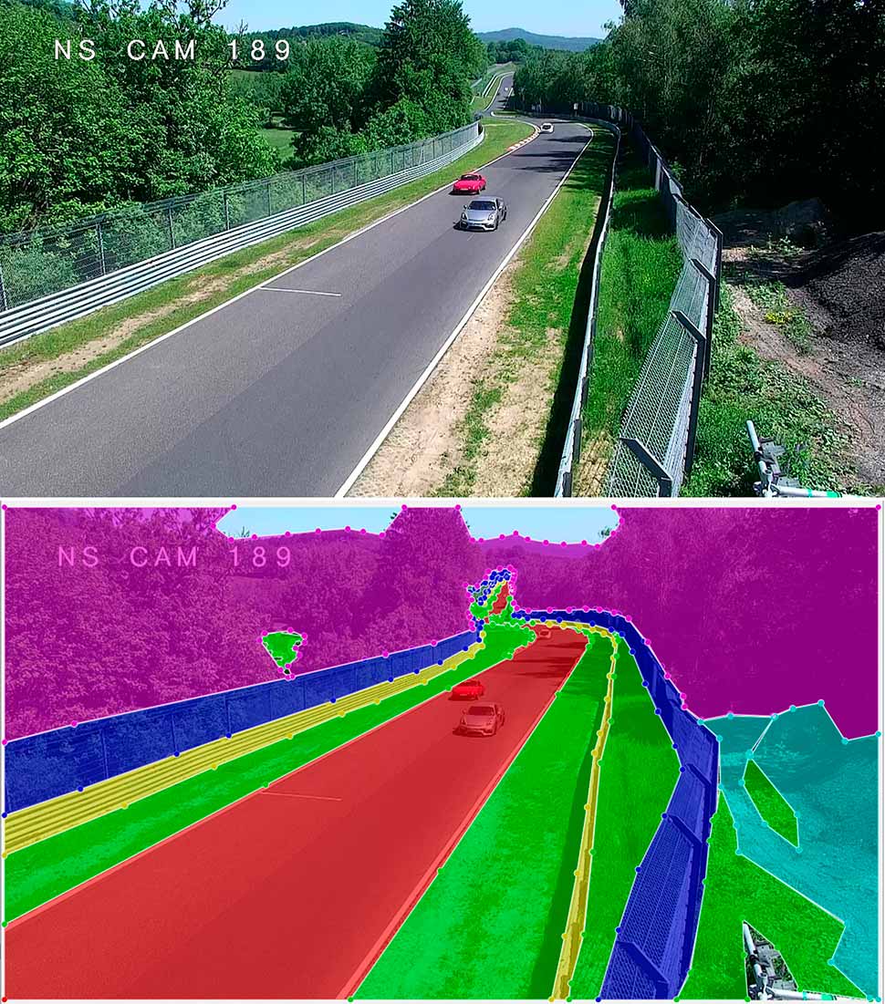 Für den Praxiseinsatz der neuen Software absolviert die KI im ersten Schritt ein umfassendes Training. Hierbei erlernt sie, verschiedene Bestandteile der Rennstrecke, wie „Fahrbahn“, „Wiese“, „Schotter“, „Leitplanken“ sowie die Fahrzeuge entsprechend einzuordnen. Die KI analysiert dabei ständig, auf welchem Segment sich ein Fahrzeug gerade bewegt. Auch die Differenzierung verschiedener, naturgegebener Abweichungen wie Regen oder Schattenwurf gehört dazu. Zudem werden Besonderheiten wie Ölspuren, Fahrbahnverschmutzungen und andere Gegenstände oder Lebewesen auf der Fahrbahn registriert. Die in Echtzeit erhobenen Daten werden unmittelbar einem System übergeben, das weitere Schritte und Alarmierungen auslösen kann. Hierzu zählen unter anderem automatische Warnungen des nachfolgenden Verkehrs auf LED Panels oder die priorisierte Darstellung des Kamerabildes bei der Streckensicherung. Dieses Training, weitere Tests und die Entwicklung der KI werden gerade auf dem ersten Testabschnitt „Döttinger Höhe“ vorangetrieben. Eine Anwendung auf die gesamte Nordschleife würde den Sicherheitsstandard auf der legendären Rennstrecke in ein neues Zeitalter überführen. Damit dies gelingt arbeiten der Nürburgring und Fujitsu mit ihren jeweiligen Kernkompetenzen Hand in Hand. Im Rennstreckenjargon könnte man sagen: Beide geben Vollgas für mehr Sicherheit.