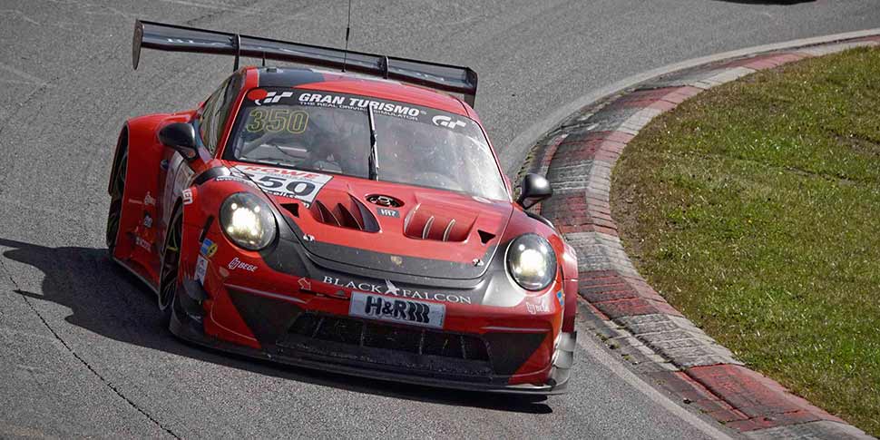 28.09.2021 BLACK FALCON hat beim achten Lauf der Nürburgring Langstrecken-Serie mit dem Porsche 911 GT3 R (#19) des BLACK FALCON Team IDENTICA die Rückkehr auf die GT3-Bühne absolviert. Beim ersten Renneinsatz stand trotz viel Pech bei der Vorbereitung der 10. Platz im Gesamtklassement zu buche. Das BLACK FALCON Team TEXTAR fuhr mit dem Porsche Cayman GT4 (#970) auf Platz acht in der hart umkämpften CUP3-Klasse.