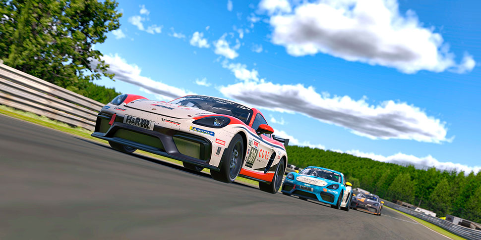 Dramatisch waren die letzten Rennkilometer in der GT4-Klasse SP10. Die Teams RSO, CoRe Simracing und Undici Scuderia umrundeten die Nürburgring Nordschleife in den letzten Runden im Formationsflug – Stoßstange an Stoßstange. Am Ende entschied sich das Rennen in der Tiergartensenke. Das bessere Ende hatten die RSO-Piloten Nils Carstensen und Nils Lorenz für sich. „Das war megaspannend und sehr anstrengend. Auf den letzten Metern hatten wir das Glück auf unserer Seite und konnten den zweiten Saisonsieg holen“, sagte Lorenz. Nach 21 Runden betrug der Vorsprung auf CoRe SimRacing im Ziel gerade einmal eine Sekunde.