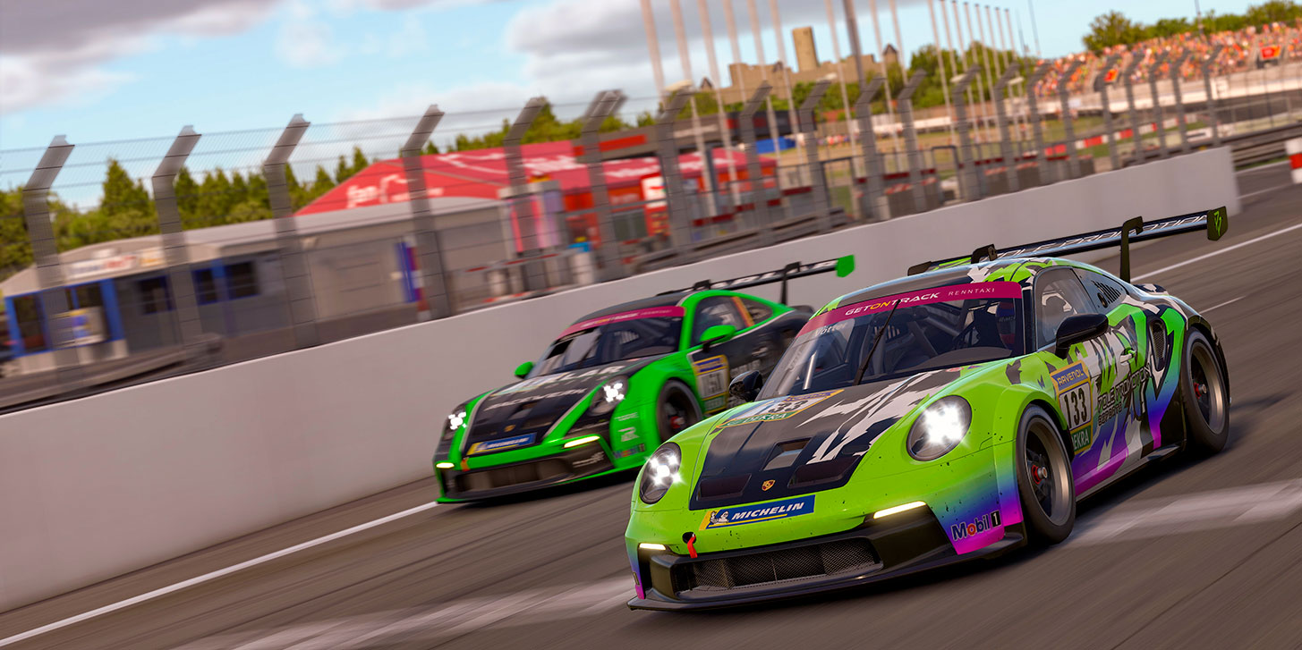 Zu einem echten Fotofinish kam es in der Cup 2. Luis Glania und Felix Vötter wurden im Porsche 911 GT3 CUP von Pole Promotion Esports nur 0,117 Sekunden vor den zweitpatzierten Hendrik Augustin und Sven Männer von CARLAR esports abgewinkt. „Wir haben uns zweieinhalb Stunden ein packendes Duell geliefert. Es ging jede Runde hin und her“, sagt Augustin. „Am Ende war es dann aber entspannter, weil wir es geschafft haben, vier Sekunden Vorsprung herauszufahren.“ Dass es im Ziel dann doch noch einmal eng werden würde, dafür war der Zieleinlauf des führenden HRT-Mustangs verantwortlich. Dieser hatte den CARLAR-Porsche bereits kurz vor der Ziellinie überrundet und die Pole Promotion Mannschaft wollte vermeiden, noch eine weitere Runde fahren zu müssen. „Wir wussten, dass es in Richtung Ziel durch die Überrundung noch einmal extrem eng werden würde und haben gerätselt, wie wir das umsetzen können. Am Ende hat es um einen Wimpernschlag zu unseren Gunsten funktioniert.“