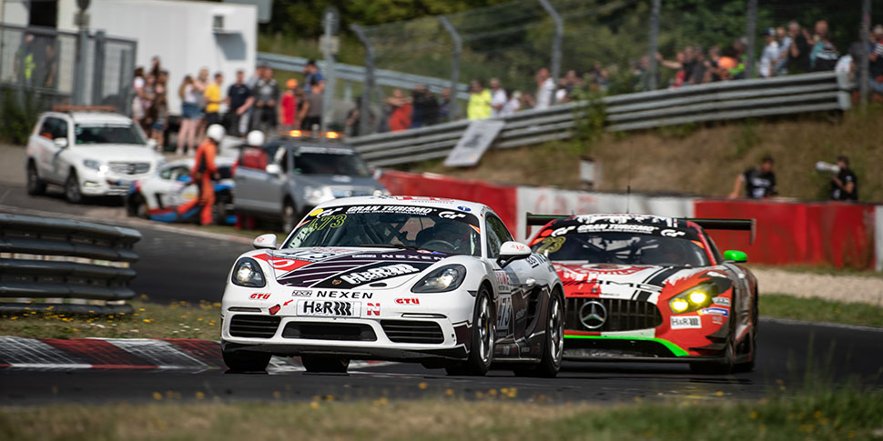 „Nach meiner Premiere auf dem NEXEN-Porsche 718 Cayman S freue ich mich schon auf das kommende Wochenende und das nächste VLN-Rennen, ich bin hoch motiviert“, betont Andreas Schettler. „Das Team hat mich sehr offen und freundlich aufgenommen, ich fühlte mich von Beginn an sehr wohl – auch im Auto. Der Auftakterfolg war trotz Hindernissen sehr viel versprechend, die Mischung mit den Fahrerkollegen passt. Mit seinem Turbo-Vierzylinder hat der Porsche ganz ordentlich Schub, das H&R-Fahrwerk fühlte sich auf den wenigen Runden im Trockenen hervorragend an und machte auch bei den schwierigen Regenbedingungen einen sehr guten Eindruck: Als wir die richtigen Reifen aufgezogen hatten, konnte ich sogar einige GT3-Autos ärgern. Und ich denke, da geht noch einiges mehr. Mal sehen, was das Wetter macht. Aber wir haben ja gezeigt, dass wir auch nasse Nordschleife können…“