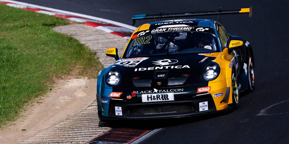 Nach dem zweiten Platz beim Saisonauftakt und der witterungsbedingten Verschiebung des zweiten NLS-Rennens (Neuer Termin: 05.11.2022) feierte das BLACK FALCON Team IDENTICA beim dritten NLS-Lauf den ersten Saisonsieg in der CUP2-Klasse der Porsche Endurance Trophy Nürburgring. Paul Harkema und Tobias Müller gingen nach einem schwierigen Qualifying ohne freie Runde von Klassenrang vier ins Rennen. Startfahrer Harkema eroberte bereits in der ersten Runde zwei Plätze und eröffnete anschließend die Jagd auf den Führenden. Das Team entschied sich aus taktischen Gründen für einen frühen Boxenstopp, der den IDENTICA-Porsche 992 GT3 Cup (#102) in eine perfekte Ausgangslage für das weitere Rennen manövrierte. Nach einem starken Doppelstint von Müller stieg für die letzten Runden erneut Harkema ins Cockpit und fuhr schließlich mit mehr als einer Minute Vorsprung als Klassensieger in der CUP2 über die Ziellinie.