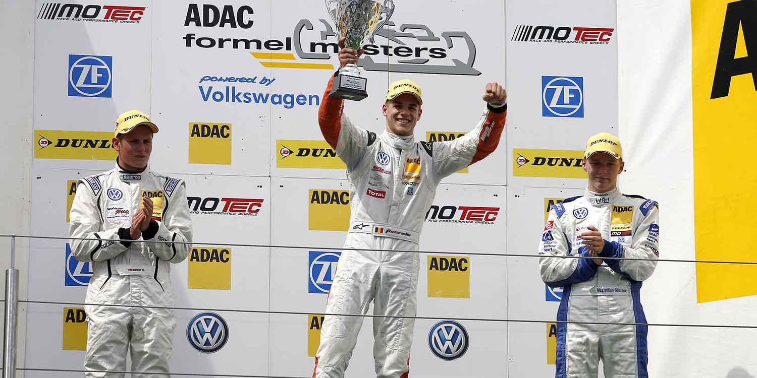 Günther konnte seine erste Pole Position in seinem Debütjahr im ADAC Formel Masters nicht in den ersten Sieg umwandeln, schaffte es als Dritter aber zum fünften Mal auf das Podium. Der 16-Jährige ist damit der bislang erfolgreichste der 14 Serienneulinge in diesem Jahr. Günther musste bis zur letzten Runde hochkonzentriert bleiben, um seinen Podestplatz nicht in letzter Sekunde zu verlieren: Ralph Boschung (15, SUI, KUG Motorsport), von Position sechs gestartet, arbeitete sich immer weiter an den Mücke-Piloten heran, für ein Überholmanöver reichte es jedoch nicht mehr. Der KUG-Pilot verpasste das Podium trotz seiner Aufholjagd als Vierter knapp, ließ Jason Kremer (18, Bonn, Schiller Motorsport) aber mit deutlichem Vorsprung hinter sich.