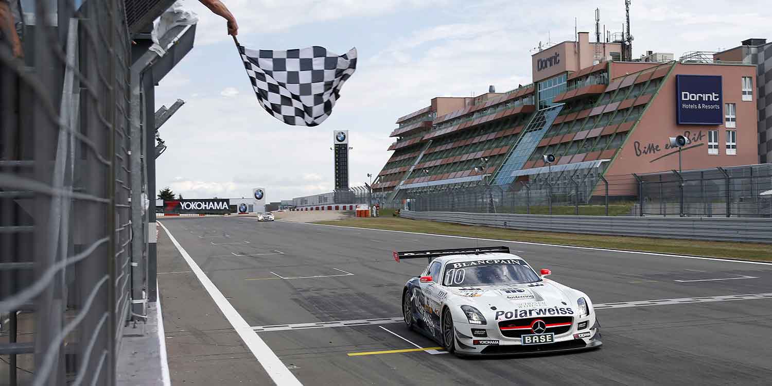 Maximilian Buhk (20, Dassendorf) und ADAC GT Masters-Titelverteidiger Maximilian Götz (27, Uffenheim / Polarweiss Racing) erleben eine der besten Wochen ihres Lebens: Am vergangenen Sonntag gewannen die beiden Mercedes-Benz-Piloten gemeinsam mit Bernd Schneider die 24h von Spa. Sechs Tage später feiern Buhk und Götz gemeinsam im Mercedes-Benz SLS AMG auf dem Nürburgring, rund 100 km von Spa entfernt, ihren ersten Saisonsieg im ADAC GT Masters. Götz/Buhk siegten in der Eifel mit 2,6 Sekunden Vorsprung auf den ehemaligen Formel 1-Piloten Markus Winkelhock (32, Berglen-Steinach), der sich über seine bisher beste Platzierung im ADAC GT Masters freuen durfte, und Christer Jöns (26, Ingelheim / Prosperia C. Abt Racing) im Audi R8. Den Erfolg für Mercedes-Benz machten Sergey Afanasiev (25, RUS) und Andreas Simonsen (23, S / Polarweiss Racing) in einem weiteren Flügeltürer-Mercedes als Dritte perfekt. „Ich hoffe, dass wir auf unserer Erfolgswelle weiter schwimmen können“, jubelte FIA GT3-Europameister Buhk nach seinem ersten ADAC GT Masters-Sieg.
