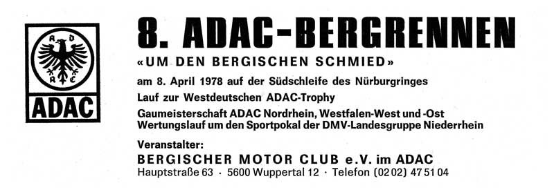 8. ADAC-Bergrennen „um den Bergischen Schmied" 1978