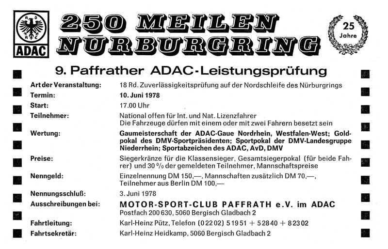9. Paffrather ADAC-Leistungsprüfung „250 Meilen Nürburgring“ 1978
