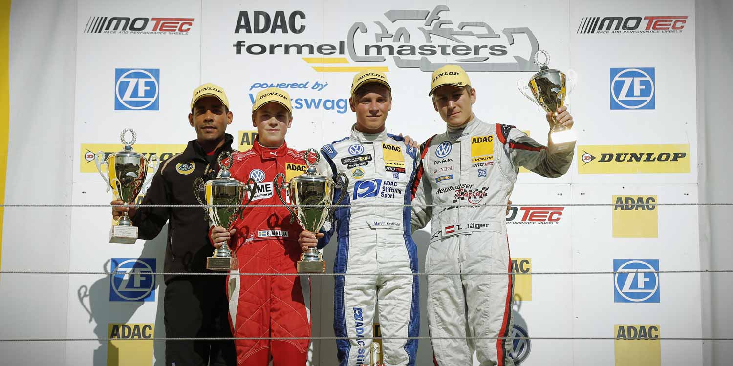 16.09.2012 Das Duell um die Meisterschaft im ADAC Formel Masters könnte kaum spannender sein: Marvin Kirchhöfer (18, Leipzig, Lotus) verkürzte mit einem Sieg im zweiten Rennen auf dem Nürburgring seinen Rückstand auf den Gesamtführenden Gustav Malja (16, SWE, Neuhauser Racing) weiter. Der Förderpilot der ADAC Stiftung Sport feierte seinen zweiten Erfolg an diesem Wochenende und liegt in der Gesamtwertung nur noch acht Punkte hinter Malja. Der Schwede fuhr auf den zweiten Platz und führt die Meisterschaft nach dem 20. von 24 Läufen knapp mit 262 Zählern an.