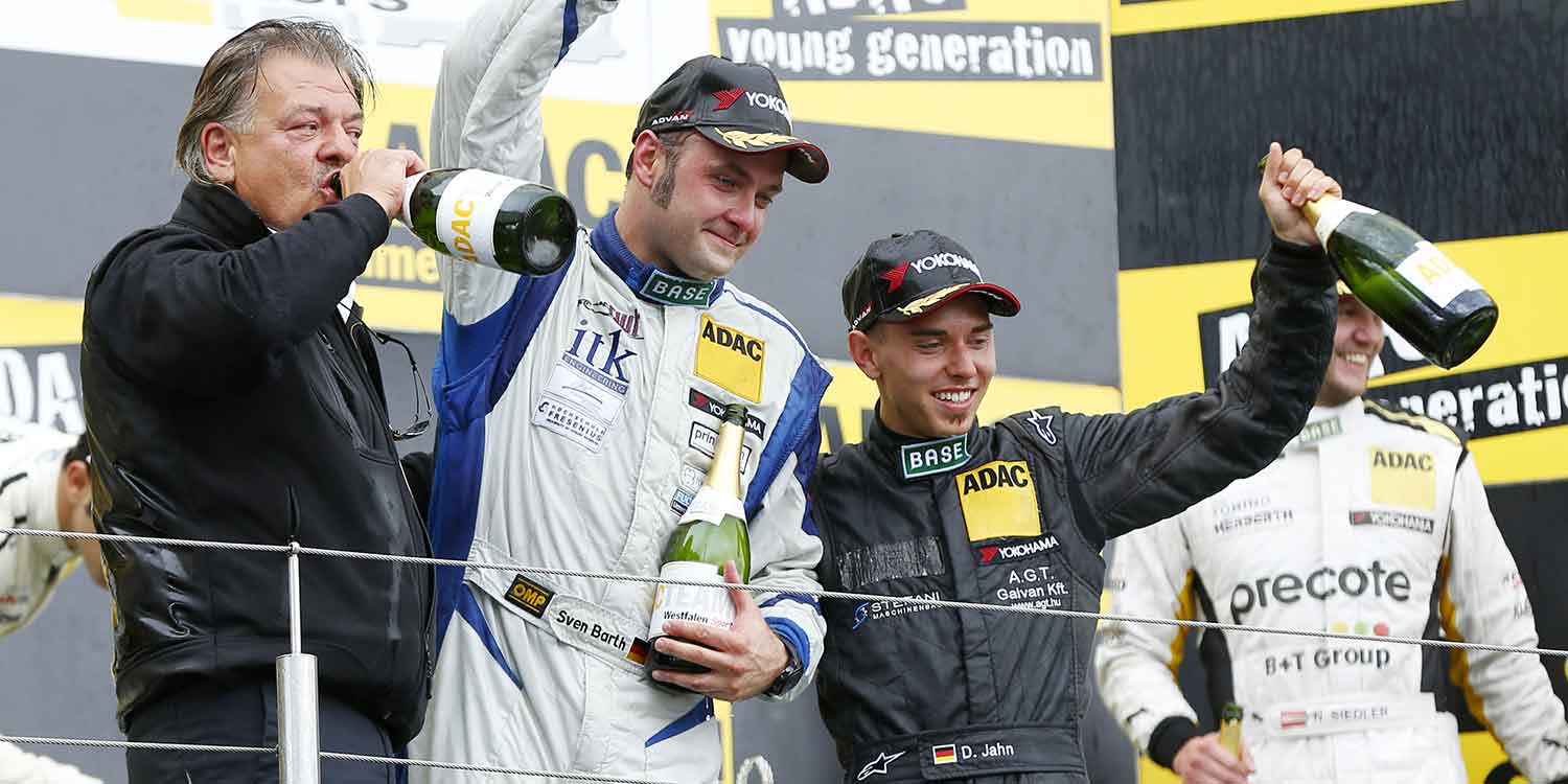 Zwei Überraschungssieger durften beim ADAC GT Masters auf dem Nürburgring erstmals jubeln: David Jahn (23, Leipzig) und Sven Barth (33, Weinheim / beide RWT Racing Team) gewannen auf einer Corvette unerwartet den elften Lauf des ADAC GT Masters. Alon Day (22, IL) und Luca Ludwig (25, Bonn / BKK MOBIL OIL Zakspeed) fuhren auf der kurzen Sprintstrecke des Nürburgrings im Mercedes-Benz SLS AMG als Zweite erstmals in dieser Saison vor dem Porsche 911 von Robert Renauer (29, Jedenhofen) und Norbert Siedler (31, A / TONINO Team Herberth) auf das Podium. „Wir haben mit unserem Podestplatz am Slovakia Ring schon gezeigt, dass wir vorn mitfahren können. Aber dass es hier nun zum Sieg reicht, ist der Wahnsinn“, jubelte Jahn. Auch RWT Racing-Teamchef Gerd Beisel rang nach dem ersten Sieg seiner Mannschaft im ADAC GT Masters um Worte: „Ich bin überwältigt. Wir haben aus eigener Kraft gewonnen und haben nicht einen Fehler gemacht.“