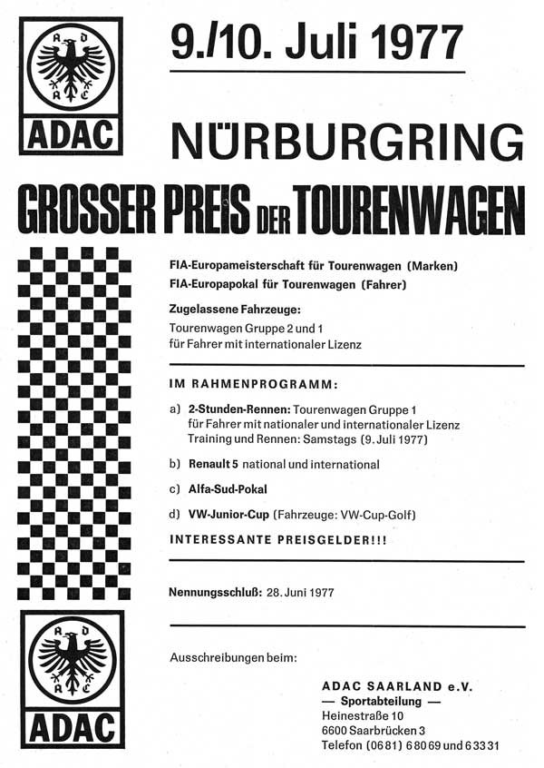 - 6. Lauf Tourenwagen Europameisterschaft 1977