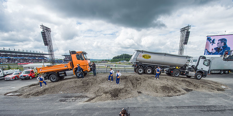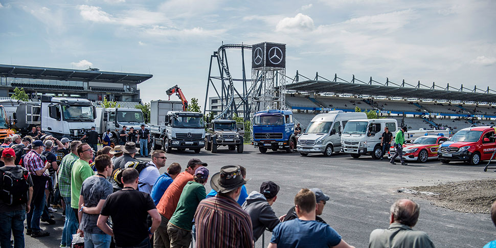 30.06.2015 | Stuttgart/Nürburgring – Die Eifel gab sich am vergangenen Wochenende als per­fekter Gastgeber und beherbergte mit einem Mix aus Sonne, Wolken und nächt­lichem Regen mehrere tausend Truckerfans. Allein am Sonntag wurden rund 50.000 Besucher gezählt. Zum 30jährigen Jubiläum des Truck Grand Prix reisten die Besucher aus ganz Deutschland in bester Feierlaune an den Nürburgring. Natürlich war auch Mercedes-Benz beim Trucker-Festival mit vor Ort und be­geisterte die Besucher.