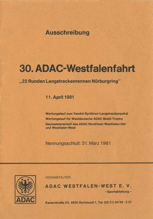 - 30. ADAC-Westfalenfahrt "22 Runden Langstreckenrennen Nürburgrlng"