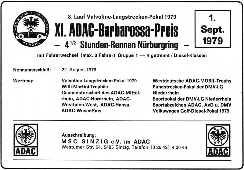 • 8. Lauf VLN – Valvoline-Langstreckenpokal Nürburgring 1979