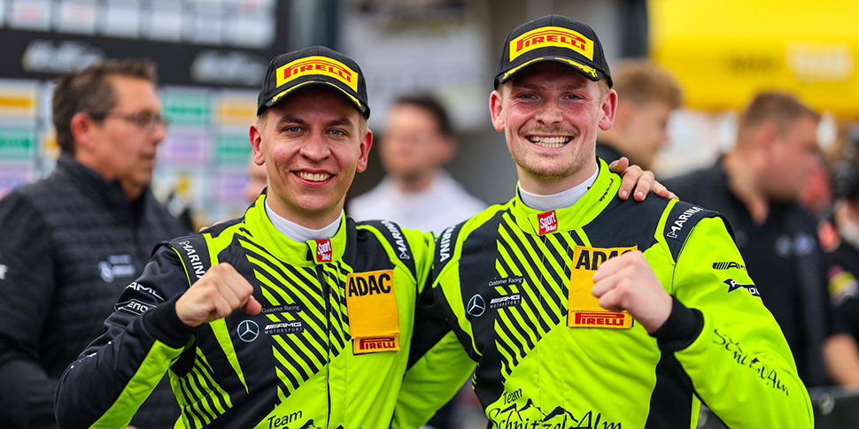Das erste Ausrufezeichen setzte ADAC GT Masters-Debütant Julian Hanses bereits im ersten freien Training am Freitag, als er auf Anhieb mit dem #11 Mercedes-AMG GT3 Gesamtbestzeit fuhr. Für ihn und seinen Teamkollegen Marcel Marchewicz ging es jedoch auch danach erfolgreich weiter. So konnte Marchewicz am Samstag im Qualifying nicht nur einen starken fünften Startplatz erzielen, sondern sich beim Rennstart auch direkt auf die dritte Position nach vorne schieben. Im Wechsel mit seinem Teamgefährten Hanses lieferten beide Fahrer trotz einer Vielzahl von harten und intensiven Zweikämpfen mit der Konkurrenz ein fehlerfreies Rennen ab, was auch der Grundstein für das spätere Podiumsergebnis war. Dank eines sehenswerten Überholmanövers in der allerletzten Kurve sicherte Marchewicz dem Team von Schnitzelalm Racing schließlich noch auf den letzten Metern den dritten Gesamtrang.