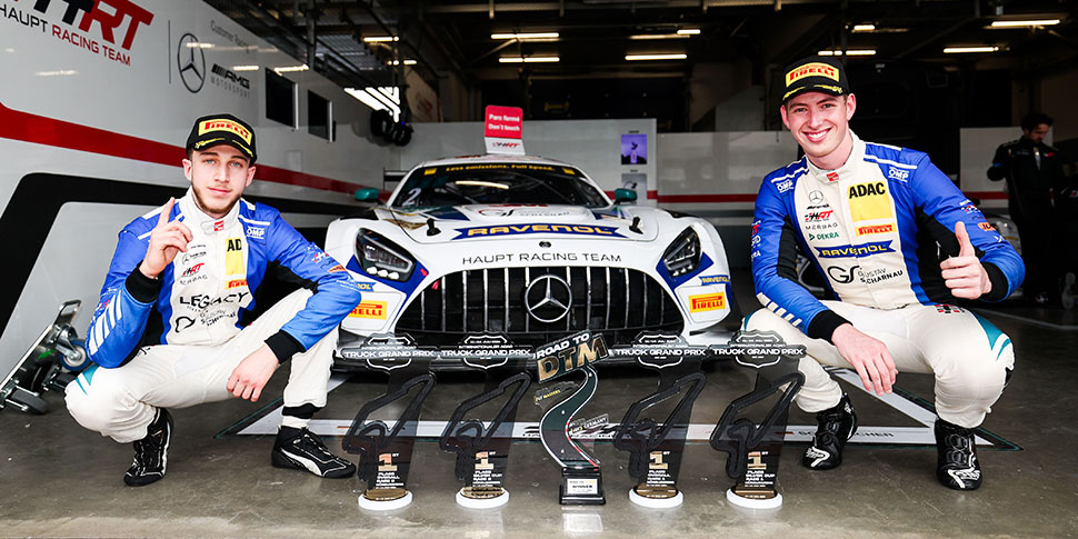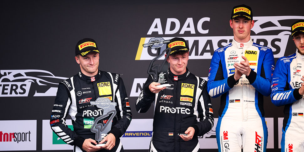 14.07.2024 | Nürburg Sternstunde auf dem Nürburgring: Beim 250. Rennen des ADAC GT Masters glänzten die Mercedes-AMG-Piloten David Schumacher (Salzburg) und Salman Owega (Köln) aus dem Haupt Racing Team mit ihrem zweiten Saisonsieg. Nachdem die beiden Youngster schon den Samstagslauf für sich entschieden, machten sie den Doppelpack im Jubiläumslauf über die Sprintdistanz von 40 Minuten perfekt. „Es ist immer etwas Besonderes, bei einem Jubiläum zu gewinnen und sich in die Geschichtsbücher einzutragen. Der Weg dorthin war jedoch nicht einfach, denn über die gesamte Dauer bekamen wir viel Druck von unseren Konkurrenten. Zu Beginn half uns das Zusatzgewicht, die Reifen auf eine gute Temperatur zu bringen. In den letzten zehn Runden war der Grip deutlich geringer, aber Salman hat das gut gemacht“, sagte Schumacher, der am Wochenende auch die Trophäe für den besten Starter in der „Road to DTM“-Wertung erhielt. Auf dem Silberrang platzierten sich Finn Wiebelhaus (Obertshausen) und Jannes Fittje (Langenhain) im zweiten Mercedes-AMG GT3 vom Haupt Racing Team. Das Podium komplettierte der BMW M4 GT3 von Maxime Oosten (NL) und Leon Köhler (Erlenbach am Main/FK Performance).