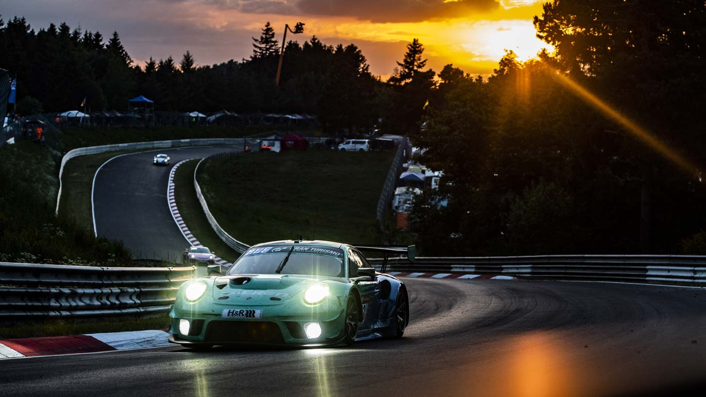 Das Schwesterauto des italienischen Kundenteams war durch die Nacht der bestplatzierte Porsche 911 GT3 R auf der Strecke. Doch auch die Crew der Nummer 28 hatte großes Pech: Werksfahrer Thomas Preining (Österreich) lag auf Gesamtrang fünf, als er auf der Grand-Prix-Strecke unverschuldet in einen Unfall verwickelt wurde. Die Schäden unter anderem am Lenkgetriebe des Neunelfers waren zu groß, eine Reparatur nicht mehr in akzeptabler Zeit möglich. Auch der Falken-Porsche mit der Nummer 44 schied in der Nacht nach einem Unfall aus.