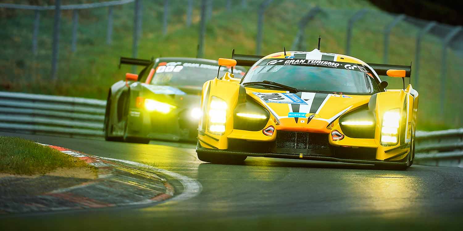 Nicht nur die zwischenzeitlich führende Mannschaft von „Traum Motorsport“ mit ihrem SCG003C musste an diesem Wochenende der härtesten Rennstrecke der Welt Tribut zollen. Auch der zwischenzeitlich auf Podiumskurs liegenden Bentley Continental aus dem Abt-Rennstall hatte Pech. Und die Pole-Sitter erwischte es schon frühzeitig: Im HTP-Mercedes hatte Christian Hohenadel (Quierschied) am Vormittag die Trainingsbestzeit gefahren, ging auch als Startfahrer ins Rennen und konnte in der Startphase das Geschehen an der Spitze mitbestimmen. Doch beim Überrunden touchierte er bereits in der ersten Stunde ein langsameres Fahrzeug und beendete das Rennen frühzeitig nach dem folgenden Leitplankeneinschlag. Als Überraschungsteam entpuppte sich die Schweizer Mannschaft von Octane 126: Ihr Ferrari 488 GT3 hinterließ einen sehr starken Eindruck, konnte im Rennverlauf ebenfalls Führungsluft schnuppern, fiel dann aber nach einem Reifenschaden aus.