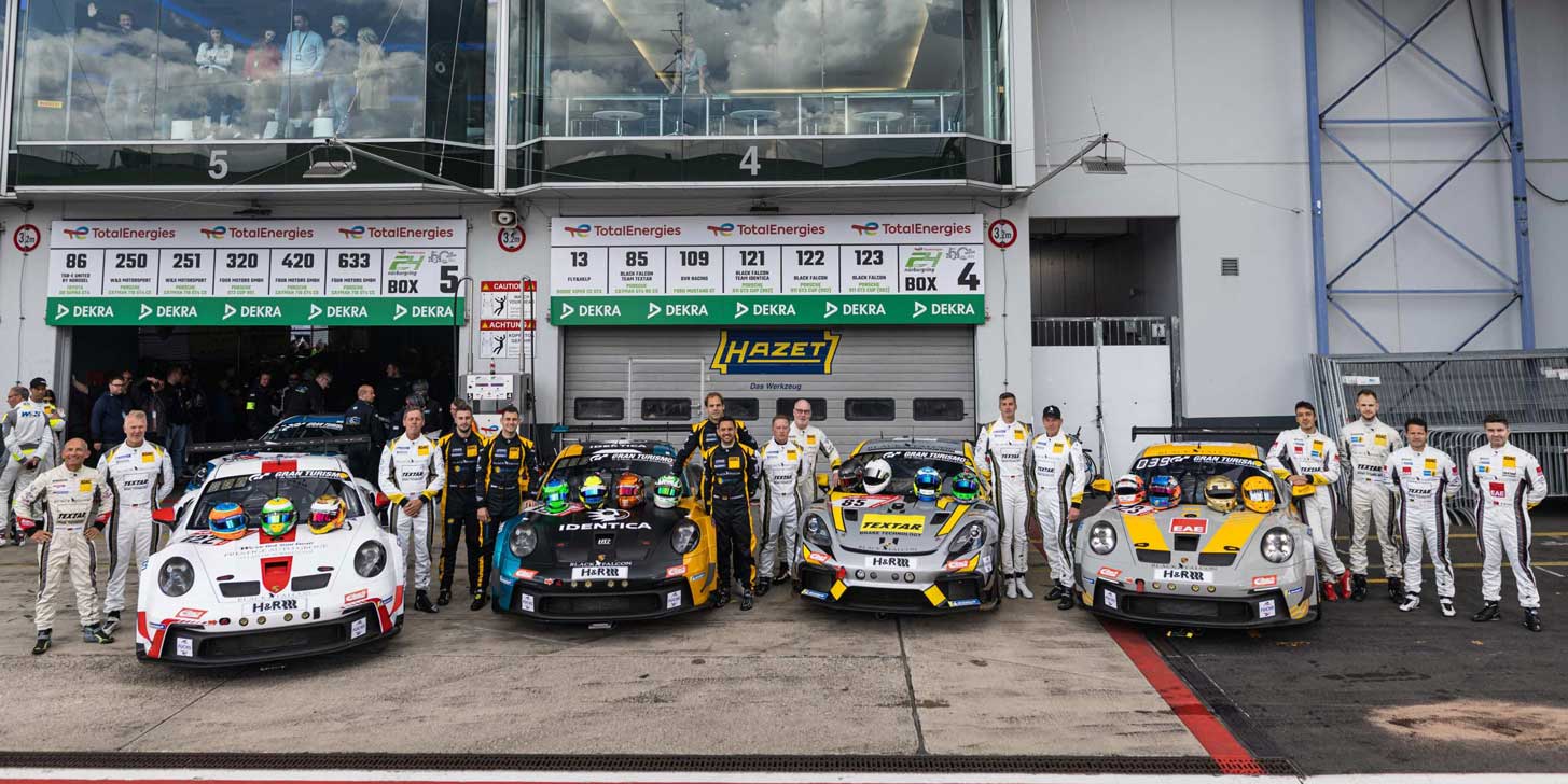 Die beeindruckende Leistung des BLACK FALCON Team IDENTICA blieb bei der 50. Ausgabe des 24h-Rennen auf dem Nürburgring am Ende unbelohnt. Paul Harkema, Tobias Müller, Noah Nagelsdiek und Tim Scheerbarth nutzten das Qualifying für letzte Abstimmungsarbeiten an ihrem Porsche 992 GT3 Cup und qualifizierten sich mit der Startnummer 121 im Mittelfeld der mit 11 Fahrzeugen stark besetzten Klasse. Im Nacht-Qualifying hatte die Mannschaft-wie auch zahlreiche andere Fahrzeuge- eine unglücklich platzierte gelbe Flagge übersehen und wurde dafür mit einer zweiminütigen Zeitstrafe im Rennen sowie dem Start aus der Boxengasse belegt. Von der schwierigen Ausgangslage unbeeindruckt egalisierten Harkema, Müller, Nagelsdiek und Scheerbarth den Nachteil schon in den ersten Rennstunden mit einer sehr starken fahrerischen Leistung. Über weite Strecken war der IDENTICA-Porsche das schnellste Fahrzeug seiner Klasse. Nach Anbruch der Dunkelheit übernahm die #121 in der Nacht zum ersten Mal die Führung in der CUP2. Dort setzte man sich fest, ehe das Rennen nach rund 16 Stunden abrupt in der Leitplanke endete. Ein Unfall im High-Speed-Bereich Tiergarten beschädigte das Fahrzeug irreparabel. Dank der hohen Sicherheitsstandards des Porsche 992 GT3 Cup blieb der Fahrer dabei unverletzt.