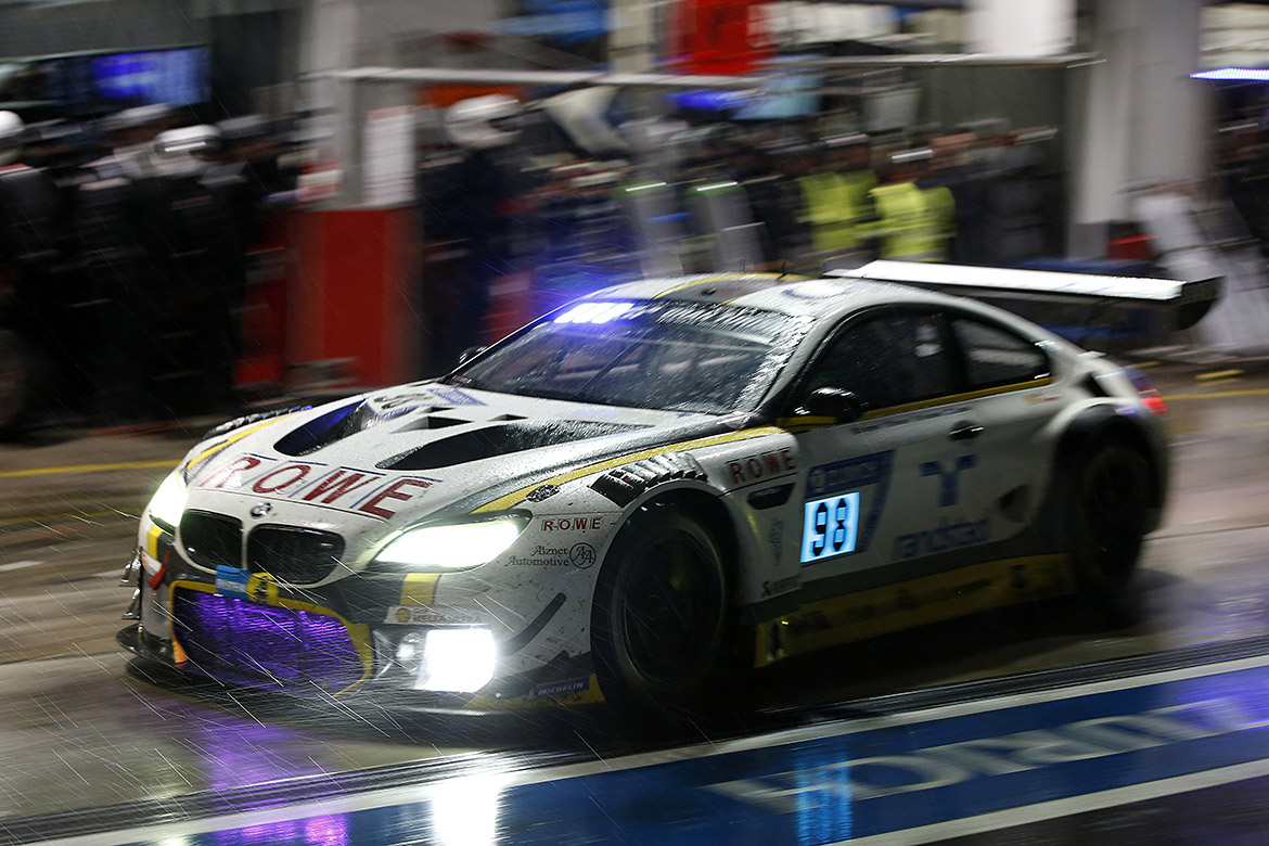 ROWE Racing hatte nach Platz zwei im Vorjahr viel Pech. Der #99 BMW M6 GT3 –mit den Fahrern Connor De Phillippi (USA), Alexander Sims (GBR), Jesse Krohn (FIN) und Martin Tomczyk (GER) – schied nach einer Verkettung unglücklicher Umstände am Samstagabend aus: In Folge eines Kühlerschadens nach einer leichten Kollision wurde der Motor beschädigt, so dass das Fahrzeug aufgeben musste. Das Schwesterfahrzeug mit der Startnummer 98 und den Piloten Nick Catsburg (NED), John Edwards (USA), Richard Westbrook (GBR) und Tom Blomqvist (GBR) lag in der Anfangsphase mehrmals in Führung, ehe es durch eine Zeitstrafe zurückgeworfen wurde. In der Nacht traten dann Probleme mit dem elektrischen Drosselklappensteller auf, die alle Chancen auf eine gute Platzierung zunichte machten und zum Ausscheiden führten.