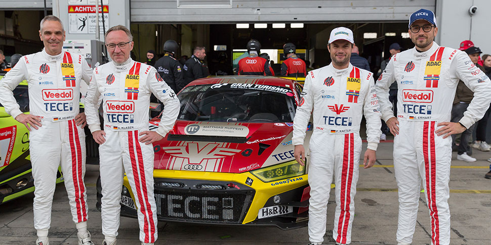 09.05.2022 | Röttenbach Nach fast zweijähriger Abstinenz kehrte EFP:racing by TECE am vergangenen Wochenende im Rahmen der ADAC 24h Nürburgring Qualifiers wieder an die berühmt berüchtigte Nordschleife zurück und absolvierte einen erfolgreichen Testeinsatz für das 24h-Rennen Ende Mai. Elia Erhart, Pierre Kaffer, Arno Klasen und Michael Heimrich, die in dieser Konstellation erstmalig unterwegs waren, brachten den #11 Audi R8 GT3 Evo II von équipe vitesse ohne Probleme über die beiden dreistündigen Rennen und belegten im top-besetzten Teilnehmerfeld die Gesamtränge 16 und 23. In der Pro-Am Kategorie sprangen für das Fahrerquartett die Plätze sechs und neun heraus.
