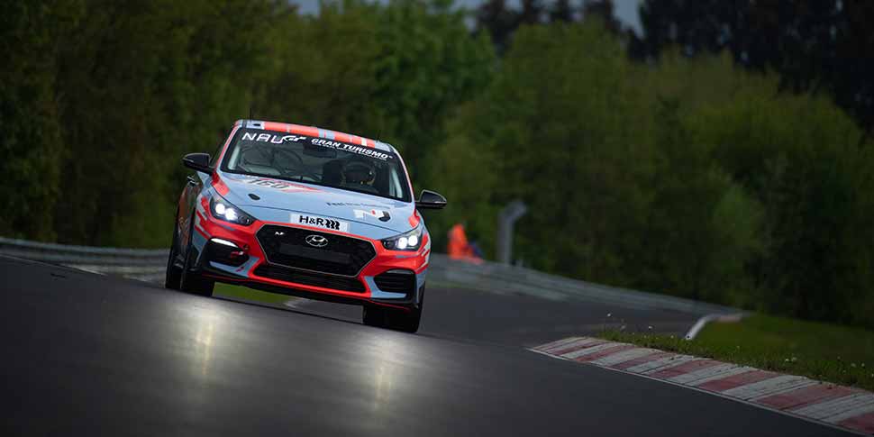 Nachdem das eigentlich geplante Renndebüt des Tourenwagens beim zweiten Lauf der VLN-Langstrecken-Meisterschaft Mitte April nach nur einer Runde wegen Schneefalls abgebrochen werden musste, stellte die „Grüne Hölle“ auch beim Qualifikationsrennen Fahrer, Autos und Teams mit ihrem wechselnden Eifelwetter vor Herausforderungen. Bereits im Freien Training und im Qualifying sorgten starke Regenschauer auf der 25,378 Kilometer langen Strecke für rutschige Bedingungen. Im ersten Zeittraining fuhr Hyundai Motor Deutschland-Markenbotschafter Luca Engstler mit einer Zeit von 10.26,553 Minuten auf den zweiten Rang in der Klasse „V2T“ für seriennahe Fahrzeuge mit maximal 2 Liter Hubraum und Turboaufladung. Nasse Bedingungen im zweiten Zeittraining verhinderten anschließend eine Zeitenverbesserung.