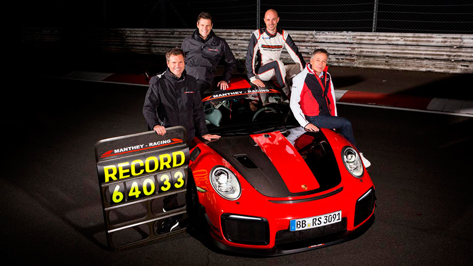 Porsche hat in Zusammenarbeit mit Manthey-Racing einen weiteren Rekord auf der Nürburgring-Nordschleife aufgestellt. Am Donnerstag, 25. Oktober 2018, umrundete der Porsche GT2 RS MR die 20,6 Kilometer lange Strecke in 6:40,3 Minuten.