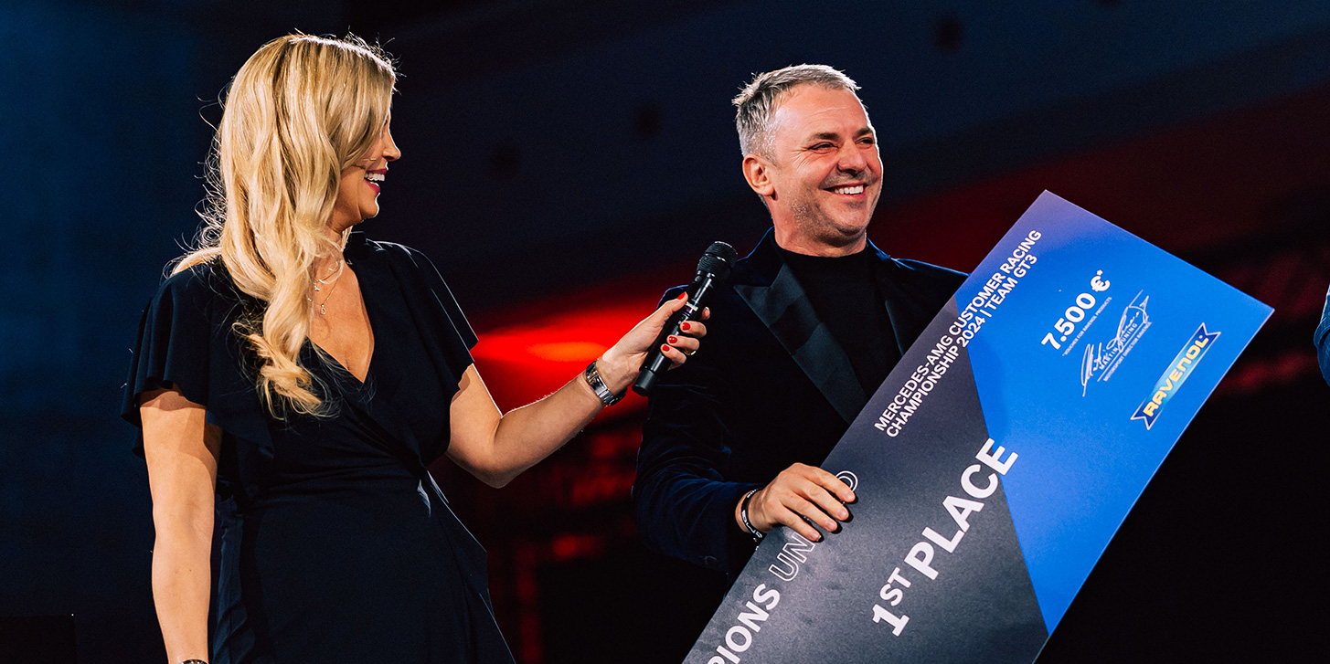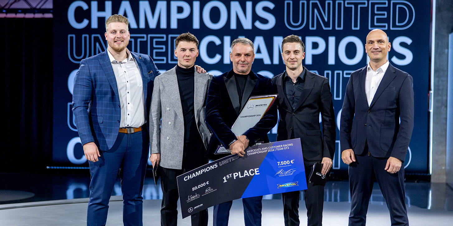 16.12.2024 | Bei der alljährlichen Saisonabschlussgala von Mercedes-AMG unter dem Motto ‚Champions United‘ wurde GetSpeed im Rahmen der markeninternen Customer Racing Championship zum weltweit erfolgreichsten von 66 GT3-Kundenteam der Saison 2024 gekürt. Teamchef Adam Osieka nahm die mit 50.000 Euro dotierte Auszeichnung auf der Bühne aus den Händen von Stefan Wendl, Leiter Mercedes-AMG Customer Racing, entgegen. In die Wertung flossen alle Einsätze aus der Saison 2024 ein, bei denen GetSpeed nicht als Mercedes-AMG Performance-Team am Start gewesen ist.