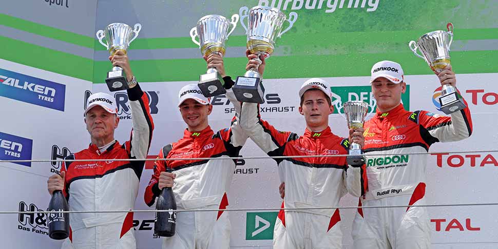 Leonard Hoogenboom, der in dieser Saison auch in der European Le Mans Series an den Start geht, absolvierte im Rahmen des 24-Stunden-Rennens auf dem Nürburgring seinen zweiten Einsatz im Audi Sport Seyffarth R8 LMS Cup – und das mit maximalem Erfolg. Der 19-jährige Niederländer sicherte sich nach einem spannenden Duell mit dem ein Jahr älteren Tim Reiter den Sieg und holte sich zudem die Zusatzpunkte für die Pole Position und die schnellste Rennrunde. Tabellenführer Robin Rogalski und Rudolf Rhyn belegten auf dem 4,638 Kilometer langen Streckenvariante des Nürburgrings die Ränge zwei und drei.