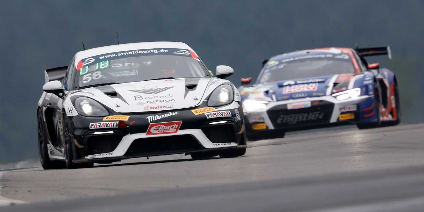 Aber auch dahinter gab es viel Rennaction. Sowohl Gregor Drasal in seinem Lamborghini Hurácan GT3 als auch Roland Arnold im brandneuen Ferrari 296 GT3 absolvierten ihre ersten Rennen unter nassen Bedingungen und mussten diesem Umstand mit – allerdings glücklicherweise folgenlosen – Drehern Tribut zollen. So fuhr mit Audi-Fahrer Pablo Schumm im Team LIQUI MOLY Team Engstler ein Gaststarter auf den vierten Rang.