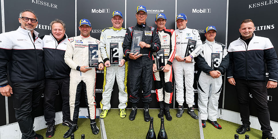 Fünf Runden vor Schluss verbesserte sich der bis dato drittplatzierte Schramm noch auf den zweiten Platz. Nach zwölf Runden sah Heger auf Gesamtrang drei und als Klassensieger die Zielflagge. Hinter dem Essener belegten Christian Kindsmüller und Tom Junglas in der 2aC-Kategorie die Plätze zwei und drei. Der dritte Podiumsplatz in der Klasse der 993 Cup-Neunelfer ging an Albert Weinzierl.