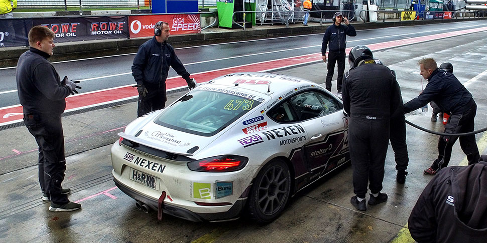 Schon im Qualifying hatte der gut 350 PS starke Mittelmotor-Turbosportwagen des Porsche-Kundenteams aus der Eifel bei wechselhaften Witterungsbedingungen einen souveränen Vorteil von 30 Startplätzen ermöglicht. Startfahrer Büllesbach übergab nach sechs Runden auf einer weiterhin mal trockenen, mal nassen Strecke planmäßig an Schettler. Nach weiteren sechs Umläufen war Zensen an der Reihe, der für fünf Runden noch einmal auf Regenreifen setzte. Als Peitzmeier einstieg, trocknete die „Grüne Hölle“ bereits teilweise ab und das Team schickte ihn für den letzten Stint mit Trockenslicks auf die mitunter noch feuchte Piste – Bedingungen, die für das 22 Jahre junge Nachwuchstalent Neuland darstellten. Hinzu kam ein Probem mit dem Turbolader, das nach zwei Runden Motorleistung kostete. Dennoch brachte der frischgebackene Maschinenbau-Ingenieur den Hecktriebler sicher und routiniert ins Ziel. Den 24-Stunden-Klassiker und dessen Sechsstunden-Qualifikationsrennen eingerechnet, hat das Team NEXEN TIRE Motorsport in diesem Jahr bereits zum fünften Mal die Ziellinie als bestplatziertes Auto der Klasse VT3 überquert.