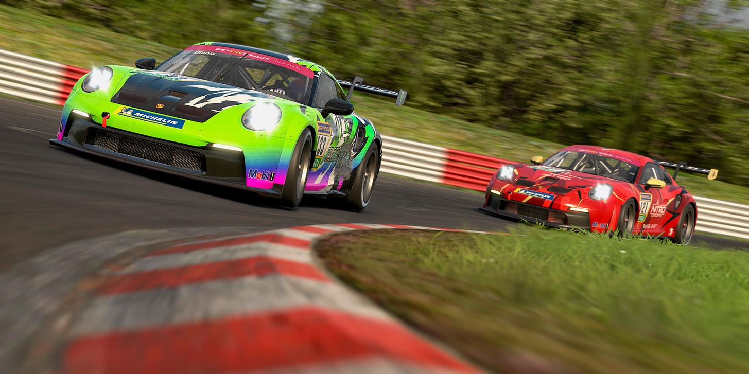 Einen wahren Parforceritt absolvierten die beiden erstplatzierten Teams in der Klasse Cup 2 der Porsche Endurance Trophy Nürburgring. Luis Glania und Felix Vötter hatten mit dem Elfer von Pole Promotion Esports am Ende die Nase knapp vor Marc Balzer und Jonas Van Dreuten des Team Nitro. Bereits in der zweiten Kurve gerieten beide Fahrzeuge aneinander. Während die Nitro-Mannschaft nach einem Dreher das Feld von hinten aufrollen musste, erhielt Pole Promotion eine 20-Sekunden-Zeitstrafe. „Wahnsinn, dass wir trotzdem noch den Sieg geholt haben“, sagte Vötter. „Die Strafe hat uns angetrieben, das Letzte rauszuholen. Unsere Rundenzeiten waren richtig stark und am Ende hatten wir wieder die Nase vorne.“ Platz drei belegten Sven Männer und der erst 14-jährige Tino Scheider von CARLA esports.