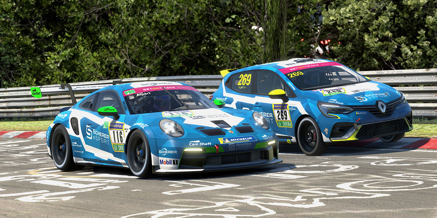 Die neuen Meister von SCHERER eSPORT haben in der sechsten Saison des virtuellen Nordschleifen-Championats gleich in zwei Klassen dominiert und im Gegensatz zur realen ADAC Nürburgring Langstrecken-Serie, wo am Ende die besten Fahrer geehrt werden, ist die DNLS eine Teammeisterschaft. Und beim Finale holten beide Scherer-Teams in ihren Klassen den Sieg. Da beide über ein blütenreines Strafpunkte-Konto verfügen und auch die Positionen in den vier Saisonrennen identisch sind, dürfen sich beide über den Meistertitel freuen.