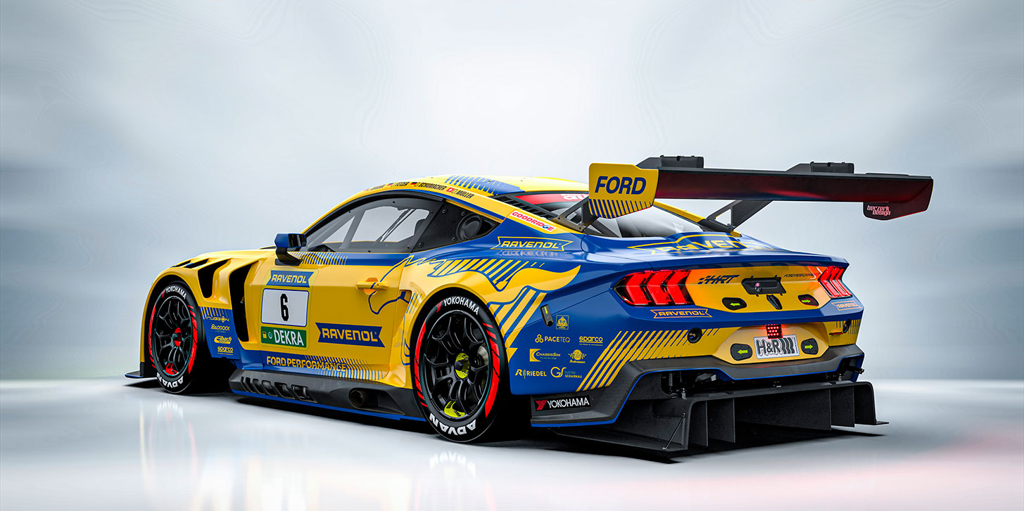 Der zweite Ford Mustang GT3 geht mit der Startnummer 6 ins Rennen. Das Line-up bilden Dennis Fetzer, Jusuf Owega, David Schumacher (alle GER) und Dirk Müller (SUI). Alle vier Fahrer waren für das Haupt Racing Team bereits in der Vergangenheit auf der Nürburgring-Nordschleife im Einsatz. Optisch besticht der GT3 #6 durch sein invertiertes RAVENOL-Design in Gelb mit blauen Akzenten.