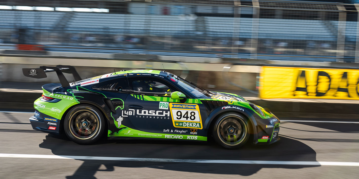Der Porsche 992 GT3 Cup (#948) – pilotiert von Tobias Müller, Noah Nagelsdiek und Carlos Rivas – sicherte sich im Qualifying die Pole Position in der hart umkämpften CUP2-Klasse. Auch im Rennen zeigte die Mannschaft eine starke Pace und erzielte die schnellste Rennrunde. Nach einem sehr guten ersten Renndrittel wurde das Trio jedoch durch diverse Code-60- und Doppelgelb-Phasen zurückgeworfen und musste sich letztlich mit dem zweiten Platz zufriedengeben. Das Team sammelte dank der beiden Bonuspunkte für Pole und Schnellste Runde insgesamt 19 Zähler – nur einen weniger als der Klassensieger – und liegt in der Meisterschaftswertung weiterhin in Schlagdistanz.