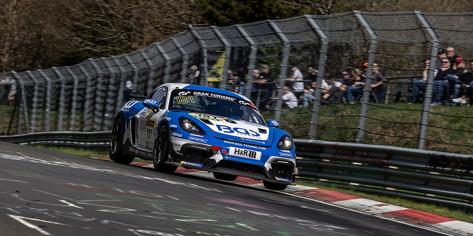 Mit einem 718 Cayman GT4 RS Clubsport trat sorg Rennsport erstmals in der NLS-Klasse SP10 an. Richard Jodexnis, Stefan Beyer (beide D) und Bernhard Wagner (A) fuhren den BGS technic-Porsche mit der Startnummer 181 am Samstag auf Position sechs.