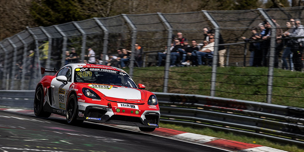 „Rennen eins am Samstag verlief für unseren Schmersal-Porsche, den Titelverteidiger der Porsche Endurance Trophy Nürburgring in der Klasse CUP3, absolut ideal“, berichtet Daniel Sorg. „Fabio Grosse konnte vom Start weg die Führung übernehmen, seine Cockpitpartner Patrick Grütter und Heiko Eichenberg machten den Klassensieg dann perfekt.“ Schärfste Verfolger der Trios mit der Startnummer 959 war das Schwesterauto, der Cayman GT4 Clubsport mit Mads Gravsen (DK), Harley Haughton (UK) und Edoardo Bugane (I) im Cockpit – wobei die beiden Letztgenannten beim ersten NLS-Lauf des Jahres nicht zum Einsatz kamen, denn gegen Ende seines Stints flog Mads Gravsen mit der Startnummer 949 im Streckenabschnitt Klostertal recht heftig ab, blieb aber unverletzt. Der dritte von Sorg Rennsport in der PETN-CUP3-Klasse eingesetzte Cayman, die von Oleksii Kikireshko (UA), Alex Fielenbach (D) und Rüdiger Schicht (CH) pilotierte Startnummer 969, musste das Rennen wegen eines Schadens im Antriebsstrang vorzeitig aufgeben. Es war der erste Ausfall dieses Fahrzeugs seit mehr als 20 Rennen.