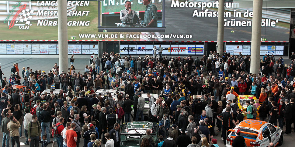 Wer sich angesichts des zu erwartenden regnerischen Wetters und Höchsttemperaturen von 9 Grad kurzzeitig einmal aufwärmen möchte, der ist ab 12:30 Uhr herzlich in den ring°boulevard eingeladen. Im Schatten der mit 45 Meter Breite und acht Meter Höhe größten fest-installierten LED-Wand Europas geben die Moderatoren Lars Gutsche und Oli Martini bei der VLN-Präsentation 2019 einen Ausblick auf die neue Saison.