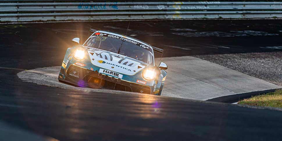 Der Porsche 911 GT3 Cup MR (#57) von Noah Nagelsdiek, Florian Naumann, Carlos Rivas und Hendrik von Danwitz startete erstmals in dieser Saison in der Klasse SP7. Das Fahrerquartett des BLACK FALCON Team IDENTICA dominierte die mit acht Fahrzeugen stark besetzte Klasse in den ersten Rennstunden nach Belieben und konnte einen komfortablen Vorsprung von mehreren Minuten herausfahren. Ein technischer Defekt am Antriebsstrang beendete das Rennen jedoch leider vorzeitig und verhinderte eine erneute Top-Platzierung.