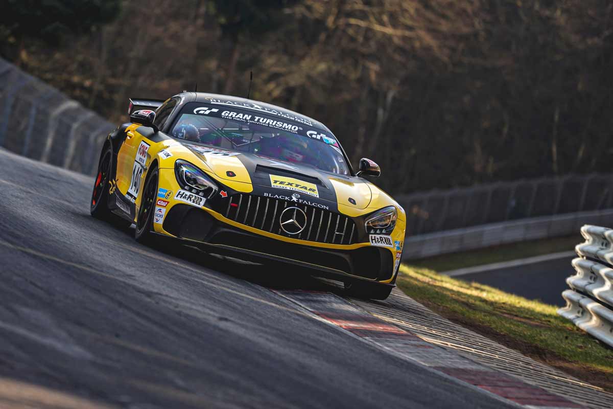 Für das BLACK FALCON Team TEXTAR kommen zwei Mercedes- und zwei Porsche-Fahrzeuge zum Einsatz. Den AMG GT4 mit der Startnummer 140 teilen sich Mustafa Mehmet Kaya, Gabriele Piana und Mike Stursberg. Am Steuer des Schwesterfahrzeugs mit der Startnummer 141 wechseln sich Marco Müller, Stephan Rösler und Ersin Yücesan ab. Beide Fahrzeuge starten in der Klasse SP8 T, in der die Fahrzeuge im Gegensatz zur GT4-Klasse SP10 mit weniger Gewicht und über 500 PS Leistung starten dürfen. In der Klasse SP7 bis 4 L Hubraum setzt das Team einen weiteren Porsche 911 GT3 Cup MR (#57) ein, der von Paul Harkema und Niels Langeveld pilotiert wird. Komplettiert wird das BLACK FALCON-Lineup durch den Porsche Cayman GT4 (#161), der in der Klasse SP10 für Fahrzeuge nach SRO-GT4-Reglement genannt ist. Den im gelb-schwarzen TEXTAR-Design gehaltenen Porsche teilen sich „Iceman“, Carsten Palluth und Tobias Wahl.