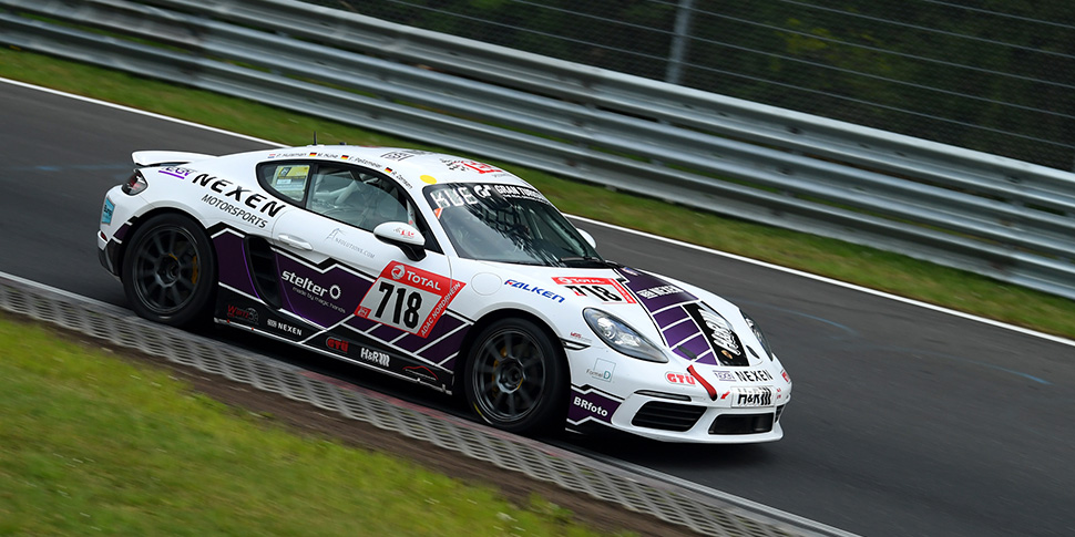 Barweiler (19.5.2019). Generalprobe gelungen, alle zufrieden: Das Team NEXEN TIRE Motorsport hat das Sechsstunden-Qualifikationsrennen auf dem Grand Prix-Kurs und der Nordschleife des Nürburgrings erfolgreich beendet. Gemeinsam mit den Gastfahrern Patrick Huisman (NL) und Michael Küke (Essen) fuhren Teamchef Ralf Zensen und Nachwuchstalent Fabian Peitzmeier (Hürth bei Köln) nach 32 Runden auf der insgesamt 25,378 Kilometer langen Strecke ohne Probleme über die Ziellinie und wurden damit als Erstplatzierte in der Klasse V3T gewertet. Das Potenzial des rund 350 PS starken Porsche 718 Cayman S – der auch die Startnummer 718 trägt – konnten sie mit einer schnellsten Runde in 9:33,359 Minute unter Beweis stellen. Dies entspricht einer Durchschnittsgeschwindigkeit von exakt 133 km/h und ist der zweitbeste Wert innerhalb der seriennahen Division V bei diesem Lauf. Dennoch misst das Team dem puren Ergebnis keine zu hohe Bedeutung bei: Die elf Stunden Fahrzeit auf dem Traditionskurs, die das Qualirennwochenende bot, haben Zensen und Co. in erster Linie für die Vorbereitung auf das 24-Stunden-Saisonhighlight genutzt. Es findet am 22. und 23. Juni auf dem Nürburgring statt.