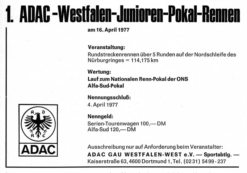 - 1. ADAC-Westfalen-Junioren-Pokal-Rennen Nürburgring