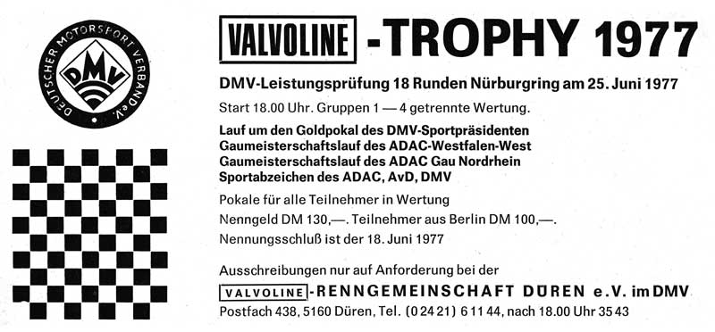 DMV-Leistungsprüfung Nürburgring „um die Valvoline-Trophy" 1977